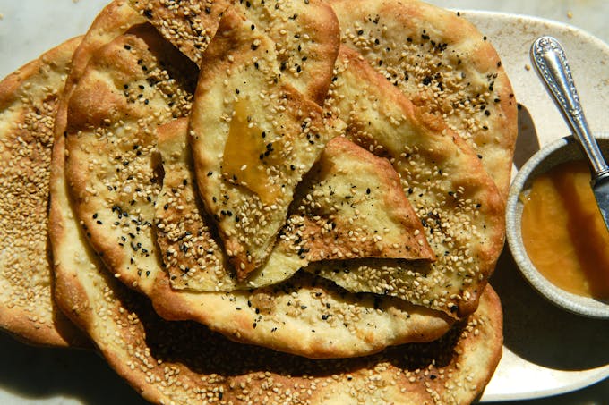 As you can imagine, the opportunity for variations here is immense. I did a version with 2 teaspoons of herbes de Provence, and that was really good. I think these are going to be a staple around here, so there are ideas for a lot of variations to try swimming around in my head. I also noticed a big cracker / flatbread recipe in Mariana Velasquez’s beautiful new book Revel (bought it yesterday) – she calls them Long Seedy Crackers. Her take uses an egg wash across the dough before sprinkling with seeds which I’m sure gives nice sheen and color. Her dough is also interesting in that it is a blend of all-purpose flour and brown rice flour, no leavener, and a good amount of olive oil. Excited to try it! I’ll update here with variations over time. In the meantime, enjoy!